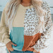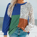 Color-blocked leopard print long-sleeved shirt