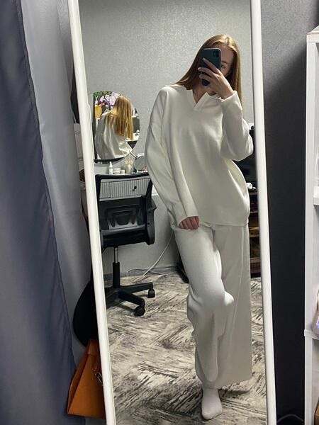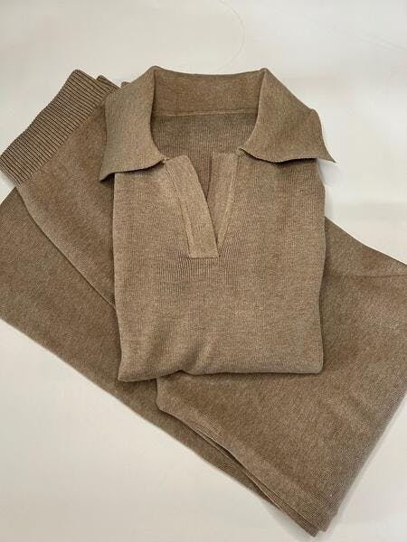 This knit set is incredibly soft and comfortable. The material feels like a second skin, and the fit is perfect. I love how cozy it is!